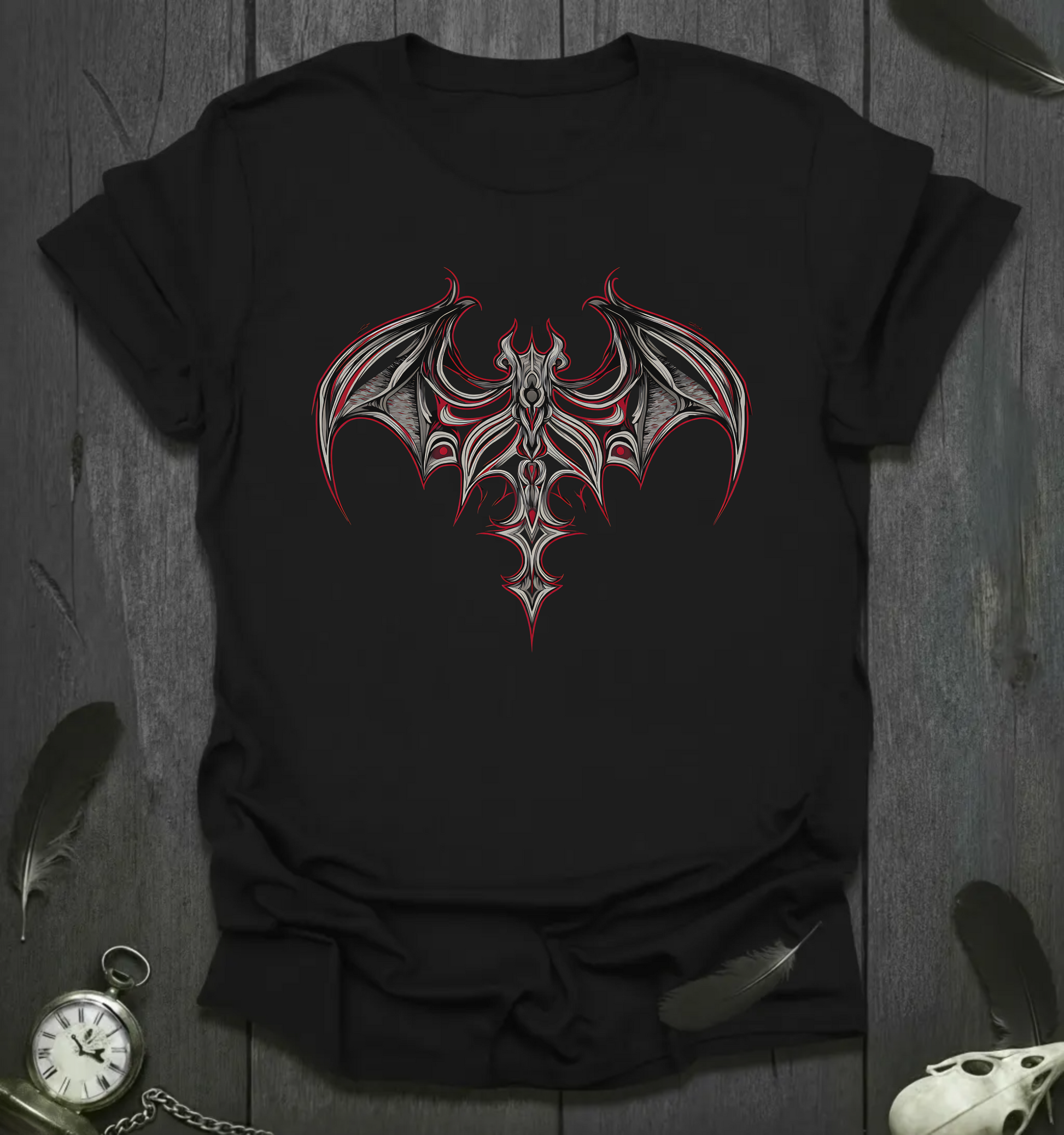 This Gothic Tribal Bat T-Shirt exudes a dark and edgy vibe, perfect for those who love alternative fashion and gothic styles. It can be worn casually or dressed up for themed events, Halloween parties, or rock concerts. Ideal for adults looking to express their unique personality through their clothing.